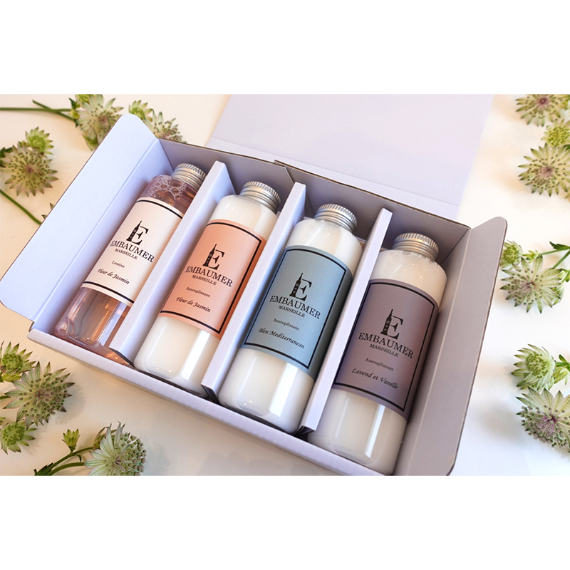 少量でお試しいただきやすいトライアルギフトボックス。(洗剤+柔軟剤3種 各120ml)
